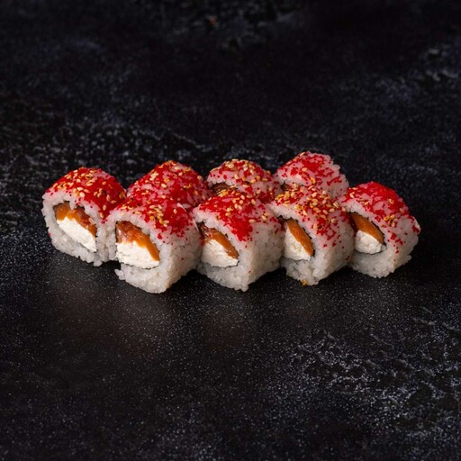 Рис, нори, сыр творожный, масаго, сыр творожный, унаги, кунжут
