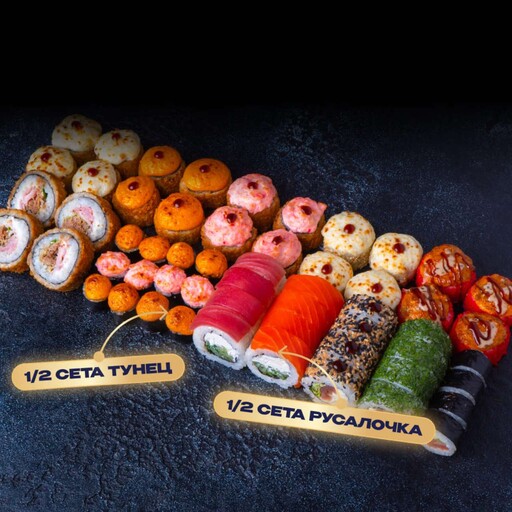 🥢 1/2 Сета Тунец 24 шт. 900 г., 1/2 Сета Русалочка 32 шт. 1082 г.