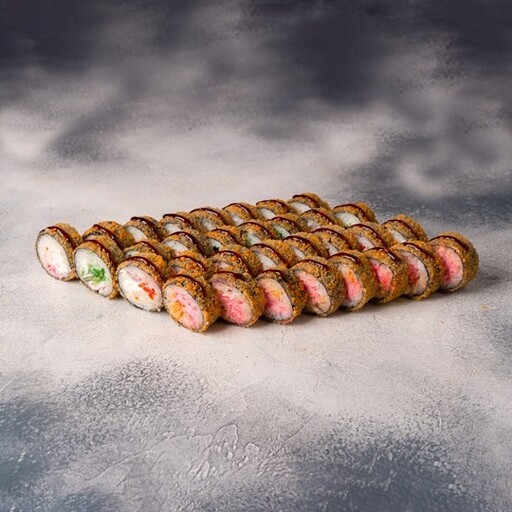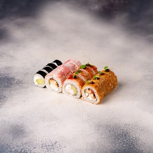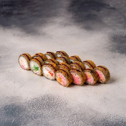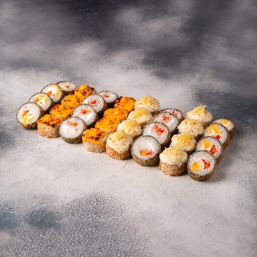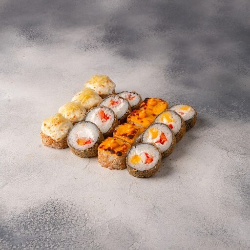 🥢 Чеддер запечённый 8шт., Спайси тёплый 8шт., Эби темпура 8шт., Калифорния обжаренная 8шт.