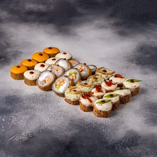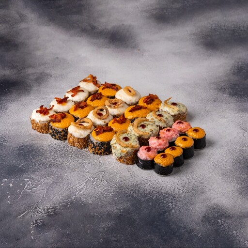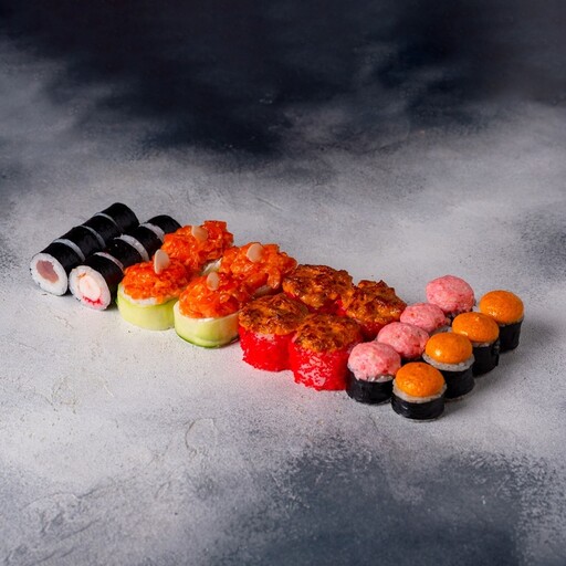 🥢 Шримп барбекю 4 шт., Калифорния запеченная 4 шт., Шримп-краб мини 4 шт., Шримп-перец мини 4 шт., Шримп-томат мини 4 шт., Лосось мини 4 шт., Чука мини 4 шт., Огурец мини 4 шт., Чикен-чиз мини 4 шт., Грибы терияки-мини 4 шт., Жареный лосось мини 4 шт., Спайси мини 4 шт., Кальмар мини 4 шт., Мидии-мини 4 шт.