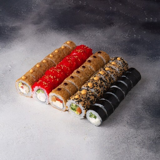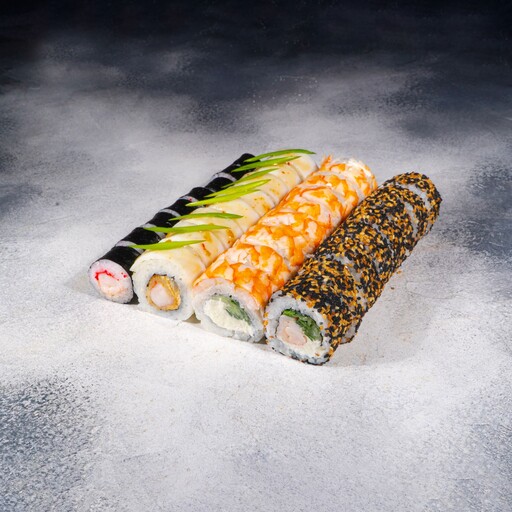🥢 Дабл чиз спайси 4 шт., Чикен темпура 4 шт., Наоми 4 шт., Чикен запеченный 4 шт., Цезарь ролл 4 шт., Ореон 4 шт., Фобос 4 шт., Эби 4 шт.