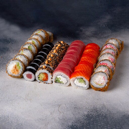 🥢 Дабл чиз классический 8 шт., Венера 8 шт., Хоукай 8 шт., Наоми 8 шт., Калифорния запеченная 8 шт., Филадельфия с креветкой 8 шт., Филадельфия с тунцом 8 шт., Сливочный ролл с тунцом 8 шт., Грин ролл 8 шт., Дон-бекон 8 шт.