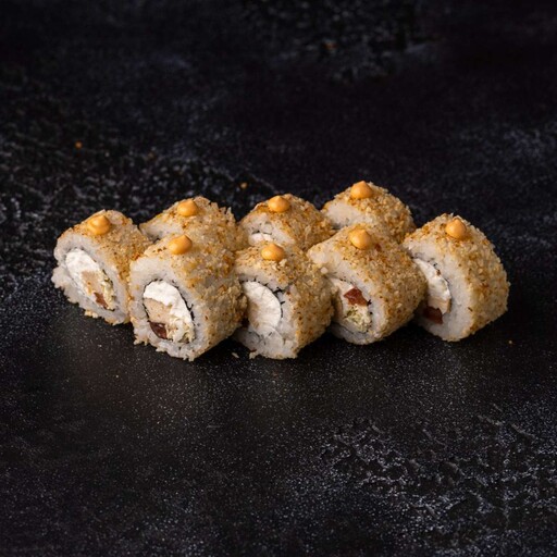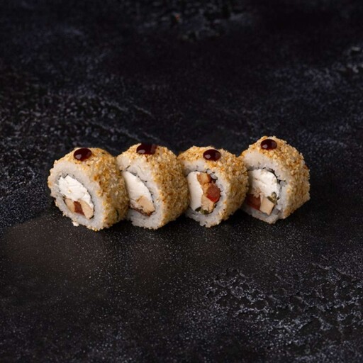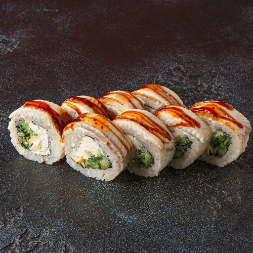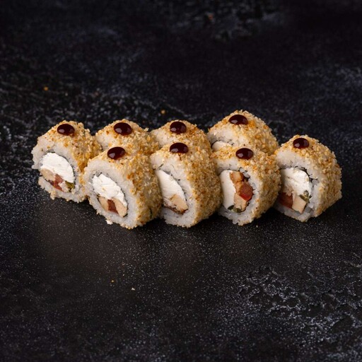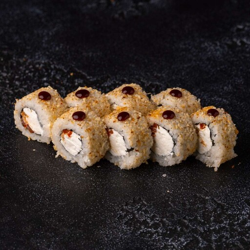 Рис, нори, сыр творожный, курица, томат, халапеньо, сухари панко, BBQ соус