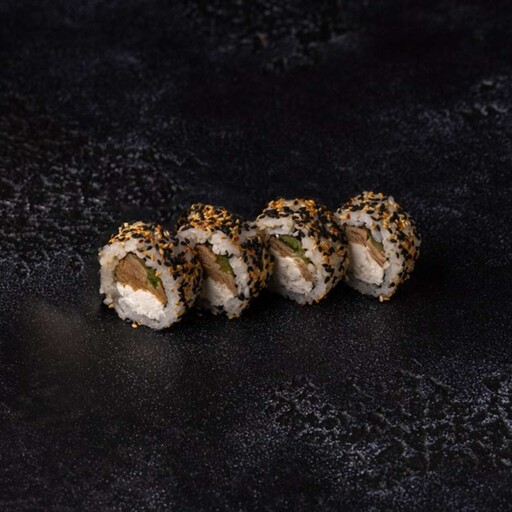 Рис, нори, сыр творожный, масаго, сыр творожный, унаги, кунжут