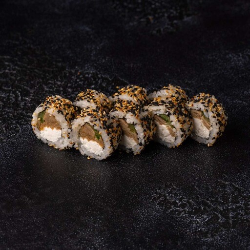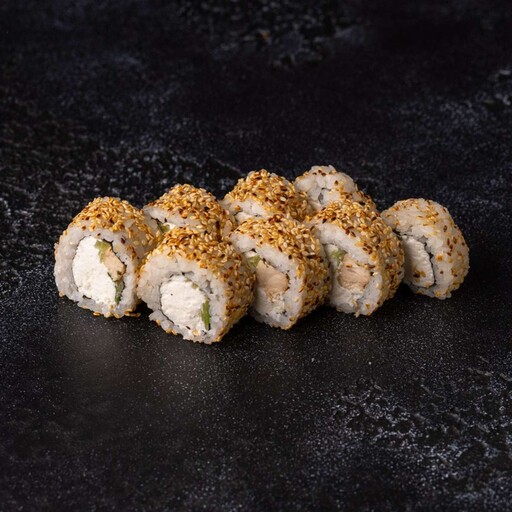 Рис, нори, сыр творожный, курица, огурец, кунжут