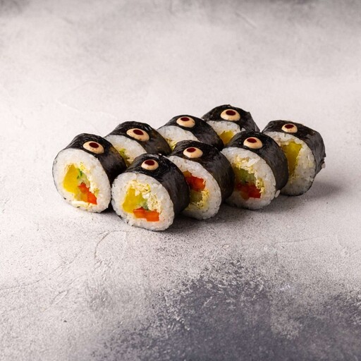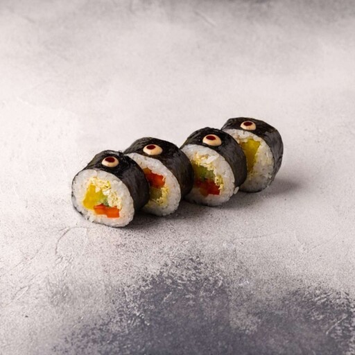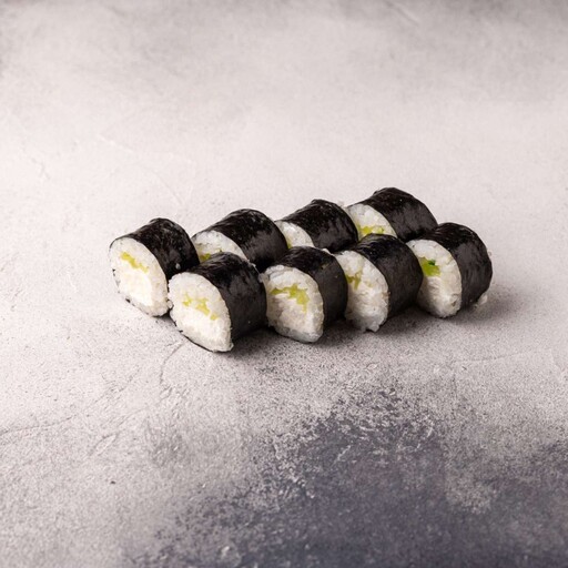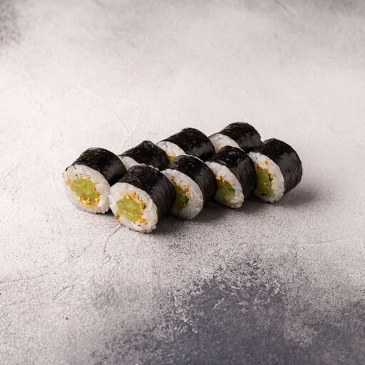 Рис, нори, пекинская капуста, такуан, перец болгарский, огурец, унаги, ореховый соус