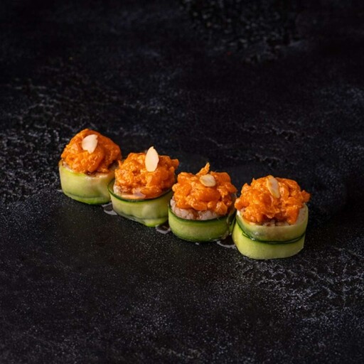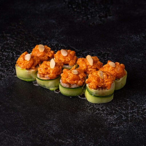 Рис, нори, лосось, огурец, пекинская капуста, кунжут, спайси соус