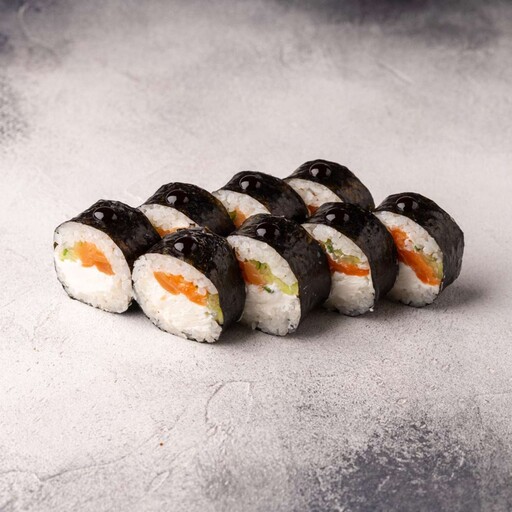 Рис, нори, сыр творожный, лосось, помидор, масаго