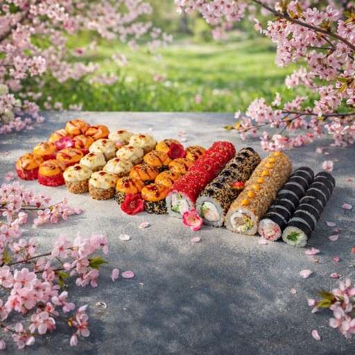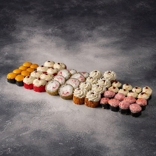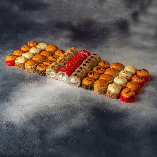 🥢 Дабл чиз классический 8 шт., Эби темпура 8 шт., Калифорния запеченная 8 шт., Киото ролл 8 шт., Филадельфия лайт 8 шт., Эби классик 8 шт., Калифорния 8 шт., Фуджи маки 8 шт.
