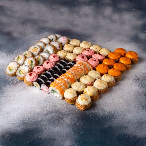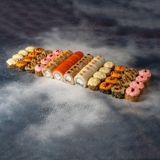 🥢 Дабл чиз классический 8 шт., Эби темпура 8 шт., Аргентина 8 шт., Краб мини 8 шт., Калифорния мини 8 шт., Мидии-мини 8 шт.