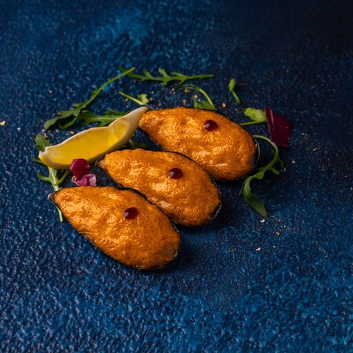 🍽 Мидии, Креветка, соус Спайси, Пармезан, соус Унаги